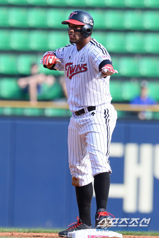 2015 KBO리그 LG트윈스와 NC다이노스의 경기가 28일 서울 잠실야구장에서 열렸다. LG 히메네스가 1회말 1사 2,3루에서 2타점 적시안타를 치고 2루에 안착하고 있다. 잠실=최문영 기자 deer@sportschosun.com /2015.06,28/