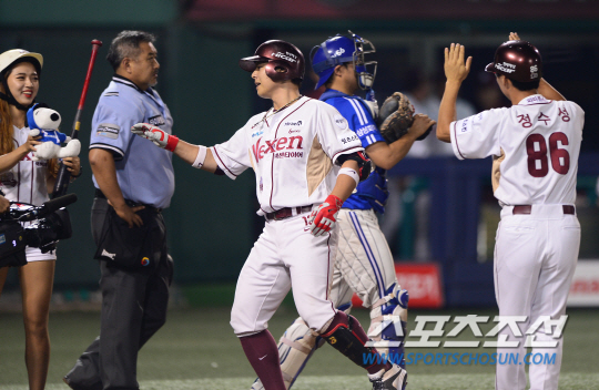 1일 목동구장에서 KBO리그 넥센과 삼성의 경기가 열렸다. 넥센 윤석민이 9회 2사 2루에서 삼성 임창용을 상대로 동점 투런홈런을 날렸다. 득점하고 있는 윤석민. 목동=송정헌 기자 songs@sportschosun.com