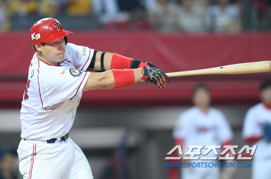 2015 KBO리그 KIA타이거스와 한화이글스의 경기가 1일 광주기아챔피언스필드에서 열렸다. KIA 6회말 1사 1루 이홍구가 1타점 적시 2루타를 치고 있다. 광주=최문영 기자 deer@sportschosun.com /2015.07,01/