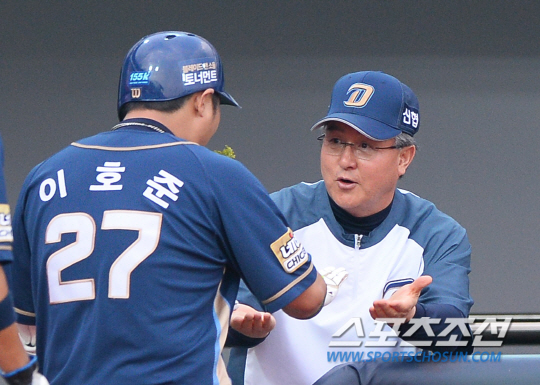 18일 수원 케이티위즈파크에서 KBO리그 kt 위즈와 NC 다이노스의 경기가 열렸다. kt가 NC에 2연승하면 시리즈 스윕승에 도전한다. kt 정성곤과 NC 손민한이 선발 맞대결을 펼쳤다. 1회 무사 2루에서 NC 이호준이 개인통산 300호 홈런포를 날렸다. 덕아웃에서 김경문 감독과 하이파이브를 나누고 있는 이호준. 수원=송정헌 기자 songs@sportschosun.com/2015.06.18