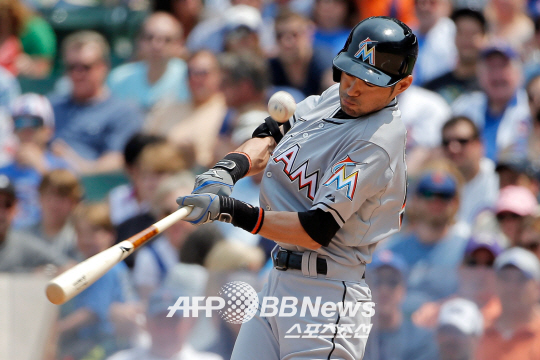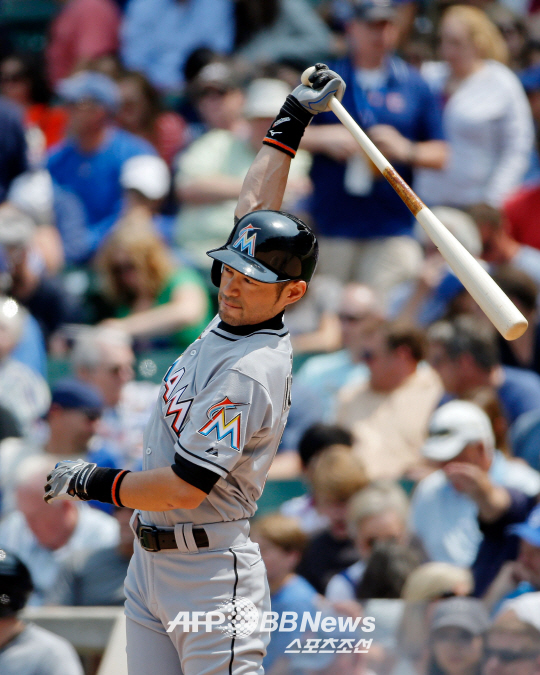 | 4일(한국시각) 시카고 컵스전 2회 타석에 선 마이애미 말린스의 스즈키 이치로. ⓒAFPBBNews = News1 |