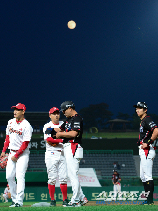 ◇지난 1일 프로야구 KT 위즈와 SK 와이번스의 주중 3연전 2차전. 5회초 2사 KT 이대형이 내야 땅볼을 치고 1루에서 아웃된 후 합의 판정을 요구한 가운데 양팀 선수들이 결과를 기다리고 있다. 합의판정 결과는 아웃. 인천=정재근 기자 cjg@sportschosun.com/2015.07.01/