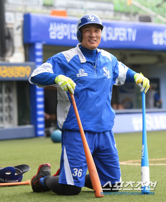 ◇2015 KBO리그 삼성라이온즈와 LG트윈스의 경기가 지난 4일 대구시민운동장에서 열렸다. 경기전 훈련도중 삼성 이승엽이 동료들의 모습을 흐믓한 표정으로 지켜보고 있다. 대구=최문영 기자 deer@sportschosun.com