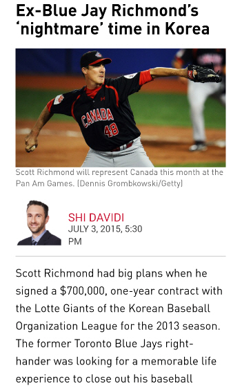 롯데가 또다시 불미스러운 일에 휘말렸다. 2013 시즌을 앞두고 영입했던 외국인 투수 리치몬드가 롯데쪽에 소송을 걸었다는 소식이 캐나다 언론을 통해 알려졌기 때문이다. 리치몬드는 2013 시즌을 앞두고 진행된 사이판 스프링캠프에서 무릎 부상을 입어 시즌 시작 전 퇴출됐던 선수다. 당시에는 조용했지만 지난해 말 갑자기 롯데가 자신에게 부당한 대우를 했다고 주장했었다. 그렇게 시간이 흘렀고, 4일(한국시각) 현지 언론을 통해 다시 한 번 억울함을 나타냈다.
