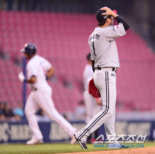 | 7월 1일 잠실 두산전에서 3회말 로메로에 동점 2점 홈런을 허용한 LG 우규민 |