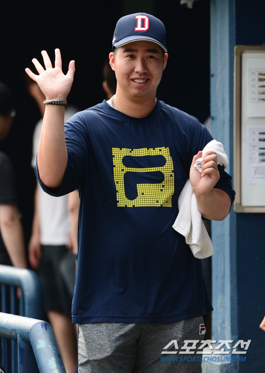 프로야구 넥센 히어로즈와 두산 베어스의 주말 3연전 3차전이 5일 잠실구장 열렸다. 유희관이 카메라를 향해 손을 흔들고 있다. 넥센 선발투수로 2승 1패 방어율 5.73의 김택형을 내세웠다. 두산에서는 2승 방어율 0.47의 허준혁이 선발 등판했다. 잠실=정재근 기자 cjg@sportschosun.com/2015.07.05/
