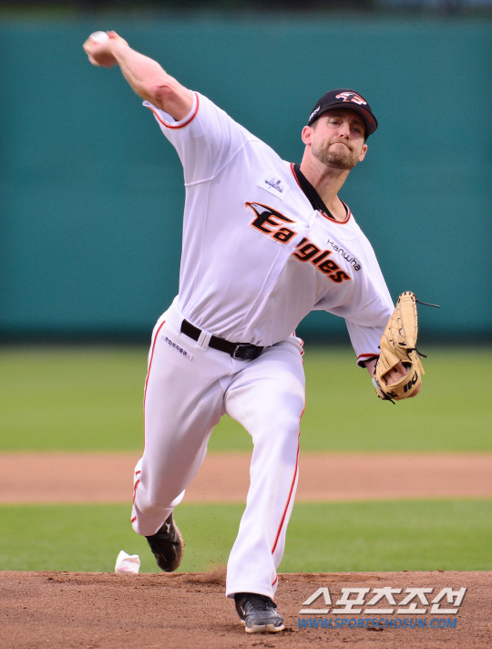 8일 오후 대전 한화생명 이글스파크에서 2015 프로야구 두산과 한화의 경기가 열렸다. 한화 선발투수 탈보트가 힘차게 볼을 던지고 있다. 대전=김경민 기자 kyungmin@sportschosun.com / 2015.07.08. |