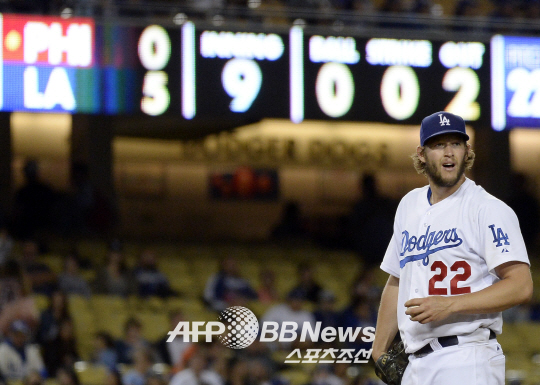 LA 다저스 커쇼가 필라델피아를 상대로 시즌 첫 완봉승을 거뒀다. 13탈삼진. ⓒAFPBBNews = News1