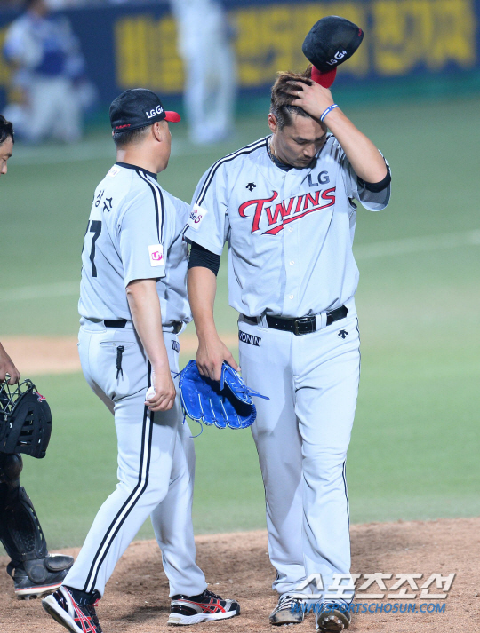 2015 KBO리그 삼성라이온즈와 LG트윈스의 경기가 3일 대구시민운동장에서 열렸다. LG 투수 이동현이 삼성 7회말 1사 1,2루에서 백상원에게 추가타점을 허용한후 교체되고 있다. 대구=최문영 기자 deer@sportschosun.com /2015.07,03/ |