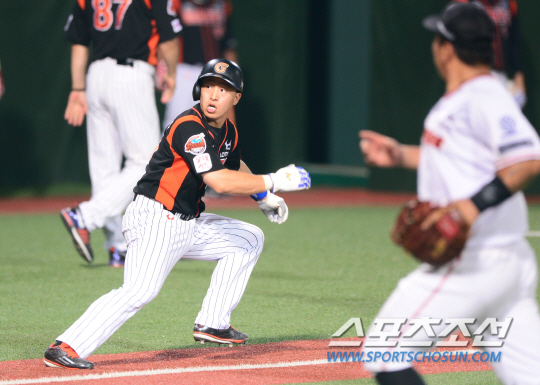 14일 청주야구장에서 KBO리그 한화 이글스와 롯데 자이언츠의 주중 3연전 첫 번째 경기가 열렸다. 롯데 8회 무사 1루에서 최준석의 안타 때 1루주자 손아섭이 홈까지 달리다가 3루로 귀루하는 도중 태그 아웃을 당했다. 3루로 귀루하고 있는 손아섭. 청주=송정헌 기자 songs@sportschosun.com/2015.07.14 |