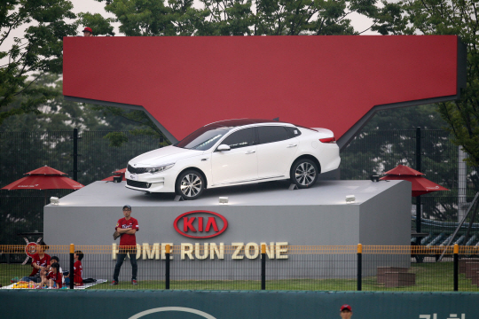 지난달까지 '올 뉴 쏘렌토'를 전시했으며, 새로 전시된 K5는 시즌 종료때까지 전시된다. 지난 4월 9일 NC 다이노스전에서 홈런으로 자동차를 맞힌 최희섭이 '올 뉴 쏘렌토'를 받았다.