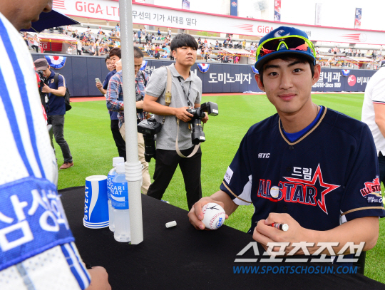 18일 수원 케이티위즈파크에서 2015 올스타전이 열렸다. 드림 올스타와 나눔 올스타로 나뉘어 펼쳐진다. 경기 전 팬사인회를 갖고 있는 선수들. 구자욱이 밝은 표정으로 사인을 해주고 있다. 수원=송정헌 기자 songs@sportschosun.com/2015.07.18
