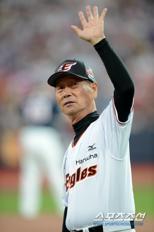 ◇2015 KBO 올스타전이 18일 수원 케이티위즈파크에서 열렸다. 1회초 드림팀 최형우의 내야안타때 드림팀의 한화 김성근 감독이 그라운드로 나서며 팬들에게 인사를 하고 있다. 수원=허상욱 기자 wook@sportschosun.com
