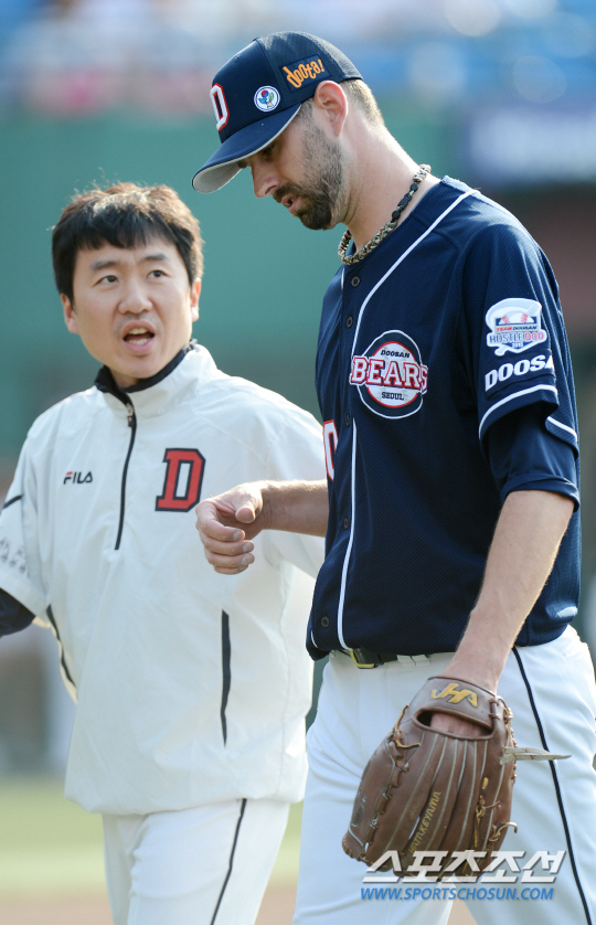 두산 베어스 외국인 투수 니퍼트가 후반기 시작과 함께 로테이션에 합류할 것으로 보인다. 지난 6월 7일 목동 넥센전서 어깨 통증을 호소하며 마운드를 내려가고 있는 니퍼트. 정재근 기자 cjg@sportschosun.com