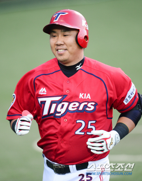 2015 프로야구 KIA 타이거즈와 삼성 라이온즈의 주중 3연전 2차전이 22일 대구구장에서 열렸다. 1회초 2사 1루 KIA 이범호가 좌중월 투런포를 치고 들어오며 환하게 웃고 있다. 대구=정재근 기자 cjg@sportschosun.com