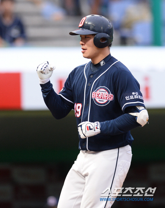민병헌은 22일 인천서 열린 SK전에서 2-0으로 앞선 2회초 무사 1,2루서 우월 3점홈런을 쏘아올렸다. SK 바뀐 투수 채병용의 초구 132㎞짜리 슬라이더를 밀어쳐 오른쪽 담장을 훌쩍 넘겼다. 지난달 7일 넥센전 이후 45일만에 터진 시즌 9호 아치. 비거리는 110m였다. 두산은 민병헌의 홈런 등으로 4점을 추가하며 초반 분위기를 장악했다.
