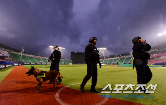 이날 경기는 우천으로 오후 7시 13분 노게임 선언됐다. 경기장을 찾았던 관중이 모두 빠져 나간 후 경찰의 수색이 이뤄졌다.
