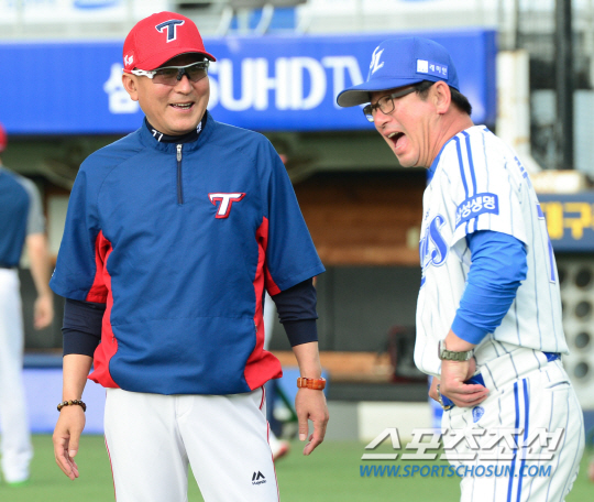 KIA 김기태 감독과 삼성 류중일 감독이 21일 대구 경기에 앞서 즐겁게 이야기를 나누고 있다. 대구=정재근 기자 cjg@sportschosun.com/2015.07.21/ |