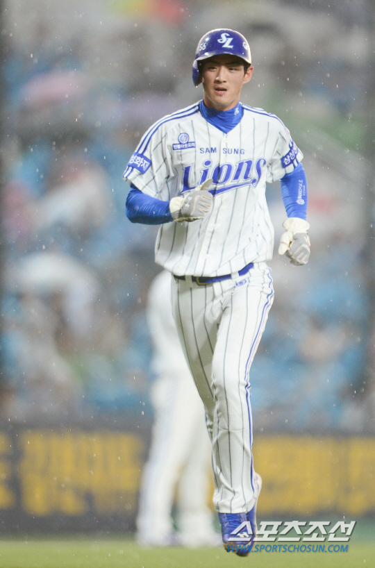 | ◇지난 21일 대구구장에서 열린 KIA-삼성전. 배우 채수빈과의 열애설 해프닝으로 하루 종일 인터넷을 뜨겁게 달군 삼성 구자욱이 1회말 2사 3루 삼성 최형우의 안타 때 홈인하고 있다. 열애설 이후에도 구자욱은 여전히 잘 하고 있다. 정재근 기자 cjg@sportschosun.com/2015.07.21/ |