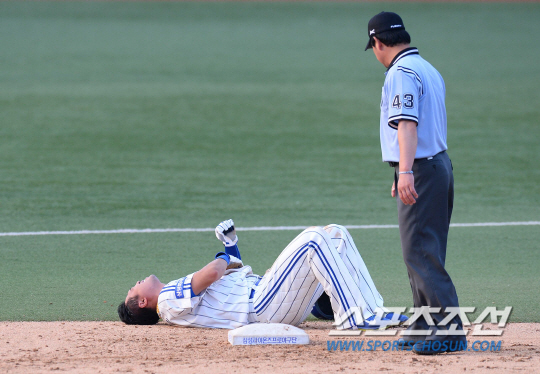 2015 KBO리그 삼성라이온즈와 LG트윈스의 경기가 4일 대구시민운동장에서 열렸다. 삼성 박한이가 2회말 2사 1루 구자욱의 타석때 2루도루를 시도하다 부상을 당하고 있다. 대구=최문영 기자 deer@sportschosun.com /2015.07,04/