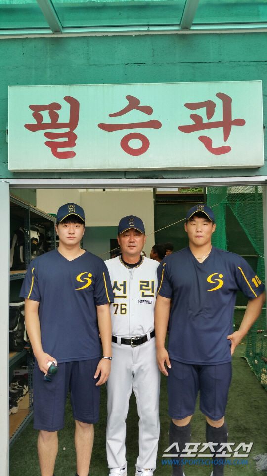 29일 서울 용산구 청파동 선린인터넷고 훈련장에서 만난 윤 감독은 "둘 다 내년 시즌에 신인왕에 도전하는 투수가 됐으면 좋겠다. 요즘 대형 신인이 없다고 하는데, 그런 쪽으로 욕심을 내볼만한 자원이다"고 했다. 교정에 들어서자 35년 만의 전국대회 우승을 축하하는 대형 플래카드가 눈길을 잡아끌었다. 우승 후 동문들의 후원이 이어지고 있다고 한다. 이번 겨울에 해외동계훈련을 계획하고 있는데, 동문회에서 항공료를 부담하기로 했다. 내년 새 유니폼 제작도 윤 감독이 지인을 통해 이미 해결했다.