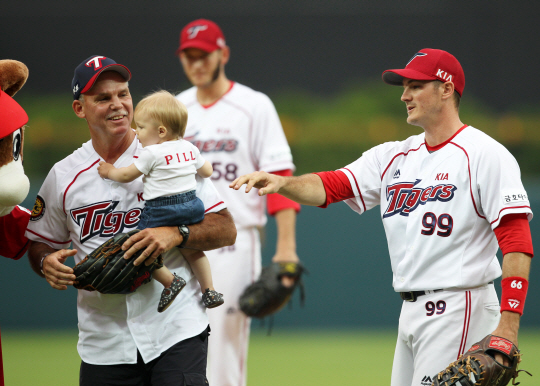 지난달 11일에는 필의 아버지 마이클 필씨(56)가 광주 기아챔피언스필드에서 열린 넥센 히어로즈전에 손녀 킨리를 안고 시구를 했다. KIA 구단 초청으로 한국을 찾은 마이클 필씨는 1977년 메이저리그 피츠버그 파이어리츠에 2라운드 지명을 받은 유망주. 어린 시절 필의 '야구교사'였다.
