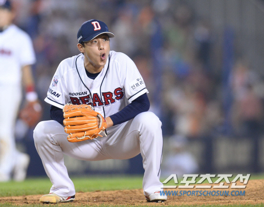 스트라이크라고 확신한 것일까. 투수 오현택도, 포수 양의지도 제 자리에서 펄쩍 뛰었다.