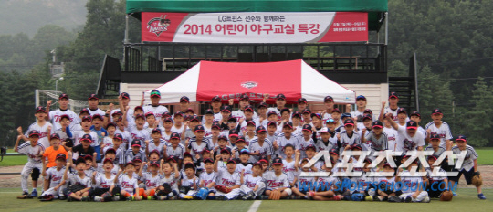 ◇LG 트윈스가 어린이 회원과 가족을 대상으로 '선수단과 함께하는 2015 어린이회원 피크닉' 행사를 8월8~9일 경기도 이천 챔피언스파크에서 진행한다. 사진은 지난해 피크닉과 야구특강을 마친 뒤 찍은 단체 기념사진. 사진제공=LG 트윈스