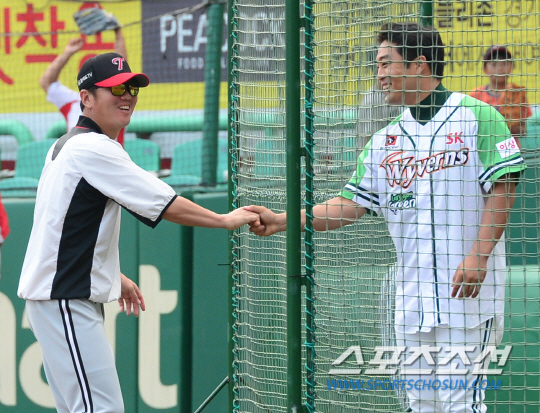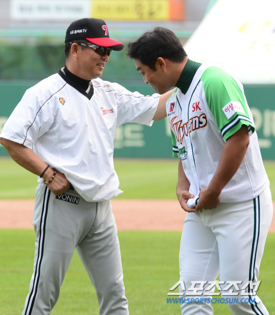 마침 그라운드 3루쪽에는 LG 양상문 감독과 차명석 수석코치가 있었다. SK 유니폼을 입은 정의윤은 양 감독과 차 코치를 향해 성큼성큼 걸어와 인사를 했다. 양 감독과 차 코치는 정의윤에게 'SK 유니폼이 잘 어울린다'며 덕담을 건넸다. 정의윤은 특유의 수줍은 웃음을 보이며 화답했다. 정의윤은 곧바로 LG 라커룸을 찾아 옛 동료들과 일주일 만의 만남을 가졌다.