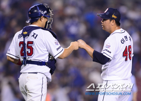 이승엽에게 투수 앞 땅볼을 유도했다. 투구를 한 뒤 침착하게 잡은 이현승은 그대로 홈에서 뿌린 뒤 포수 양의지가 1루로 연결, 절체절명의 위기를 무실점으로 막아내는 괴력을 발휘했다.