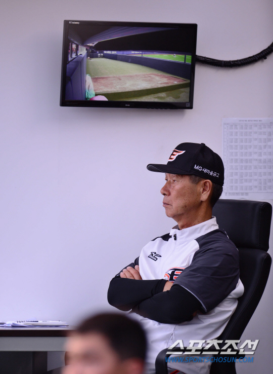22일 오후 수원 KT위즈파크에서 2015 프로야구 한화와 KT의 경기가 열렸다. 한화 김성근 감독이 경기를 지켜보고 있다. 수원=김경민 기자 kyungmin@sportschosun.com / 2015.07.22.