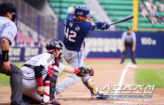 2015 프로야구 주중 첫 경기 LG와 NC의 경기가 4일 잠실 야구장에서 펼쳐 졌다. NC 1회말 2사 만루에서 김태군이 싹쓸이 우월 2루타를 날리고 있다. 잠실=조병관기자 rainmaker@sportschosun.com/2015.08.04/ |