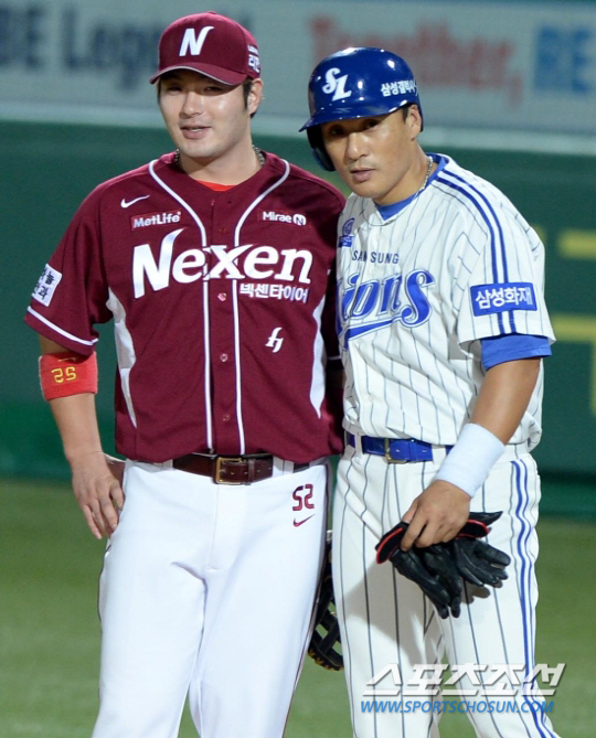 | 박병호(왼쪽)와 이승엽. 역대 최고의 오른손 거포와 왼손 거포로 꼽힌다. 성실함과 바른생활까지 10년 차이인 둘은 닮은 구석이 많다. 스포츠조선DB |