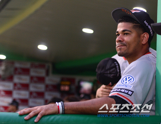 8월 4일 인천 SK행복드림구장에서 KBO리그 SK 와이번스와 한화 이글스의 경기가 열렸다. 한화의 새로운 용병 투수 로저스가 동료들과 함께 덕아웃에서 경기를 관전하고 있다. 인천=송정헌 기자 songs@sportschosun.com/2015.08.04