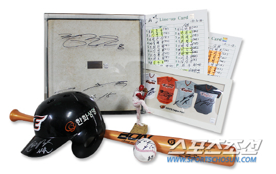 ◇한화 이글스가 '이글스 어센틱케이션 프로그램'을 실시한다. 이번 프로그램은 선수들이 실제로 사용했던 용품들을 구단 공식 홀로그램 스티커를 부착해 인증 판매하는 것으로 수익금 일부는 지역 사회공헌단체에 기부한다. 1차로 김태균 사인배트와 조인성 헬멧 등을 판매한다. 사진=한화 이글스 제공.
