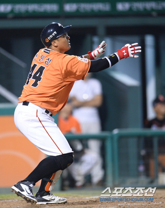 2015 KBO리그 한화이글스와 롯데자이언츠의 경기가 8일 대전 한화생명 이글스파크에서 열렸다. 한화 조인성이 8회말 1사 1,3루에서 동점 3점홈런을 치고있다. 대전=최문영 기자 deer@sportschosun.com /2015.08.08/