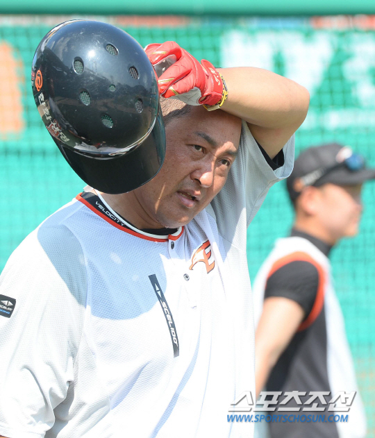 2015 KBO리그 한화이글스와 LG트윈스의 경기가 7일 대전 한화생명 이글스파크에서 열렸다. 경기전 한화 조인성이 구슬땀을 흘리며 타격훈련에 임하고 있다. 대전=최문영 기자 deer@sportschosun.com /2015.08.07/
