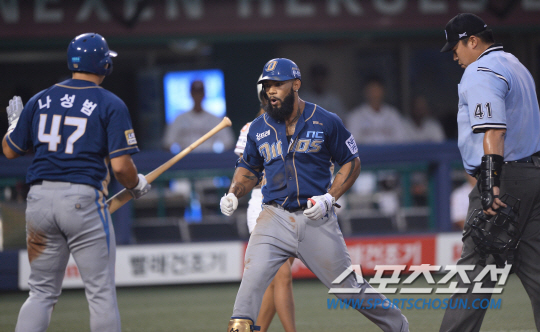 11일 목동구장에서 KBO리그 넥센 히어로즈와 NC 다이노스의 경기가 열렸다. 넥센 송신영과 NC 이민호가 선발 맞대결을 펼쳤다. NC 테임즈가 3회 무사 2루에서 넥센 송신영을 상대로 시즌 36호 투런홈런을 날렸다. 득점하고 있는 테임즈. 목동=송정헌 기자 songs@sportschosun.com