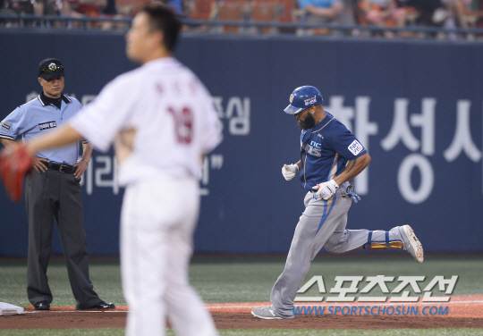 11일 목동구장에서 KBO리그 넥센 히어로즈와 NC 다이노스의 경기가 열렸다. 넥센 송신영과 NC 이민호가 선발 맞대결을 펼쳤다. NC 테임즈가 3회 무사 2루에서 넥센 송신영을 상대로 시즌 36호 투런홈런을 날렸다. 힘차게 그라운드를 돌고 있는 테임즈. 목동=송정헌 기자 songs@sportschosun.com