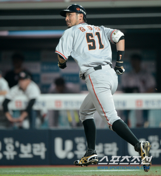 김경언은 11일 수원 케이티위즈파크에서 열린 kt 위즈와의 원정경기에 3번 좌익수로 선발 출전해 0-0이던 5회초 2점 홈런을 쳤다. 무사 1루 때 타석에 나온 김경언은 kt 세 번째 투수 조무근을 상대로 초구 공략에 성공했다. 조무근이 던진 초구 직구(시속 142㎞)가 높이 들어온 것을 놓치지 않고 잡아당겼다. 타구는 좌측 펜스를 향해 크게 날아가더니 결국 좌측 파울 폴 중단을 직접 강타했다. 비거리 110m짜리 홈런.