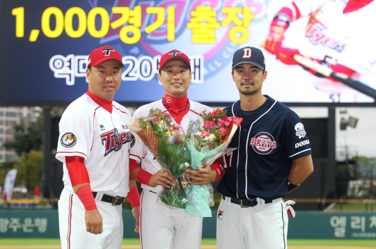 12일 광주 기아챔피언스필드에서 열린 두산 베어스전에 앞서 KIA 타이거즈 외야수 김원섭의 1000경기 출전 시상식이 열렸다.