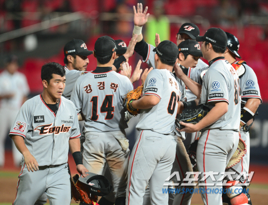 한화는 12일 수원 케이티위즈파크에서 열린 kt 위즈와의 원정경기에서 초반부터 불붙은 타선의 파괴력을 앞세워 13대4로 크게 이겼다. 이날 승리로 한화는 올시즌 처음으로 '4연승'의 기쁨을 맛봤다. 앞서 한화는 7번의 3연승을 거둔 뒤 매번 '4연승' 도전에 실패했다. 그러나 전날 kt전 승리로 8번째 3연승을 거둔 뒤 맞이한 기회는 놓치지 않았다. 이로써 한화는 시즌 53승(50패)을 기록하면서 조금씩 '5위 굳히기'에 들어갔다. 이날 경기가 우천취소된 SK는 7위로 떨어졌고, 두산을 꺾은 KIA가 6위로 올라섰는데 한화와는 2경기 차이가 난다.