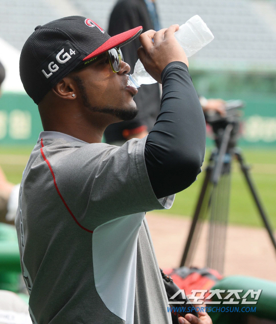 2015 KBO리그 SK와이번와 LG트윈스의 경기가 2일 인천SK행복드림파크에서 열렸다. 경기전 LG 히메네스가 물을 마시며 훈련을 준비하고 있다. 문학=최문영 기자 deer@sportschosun.com /2015.08.02/ |