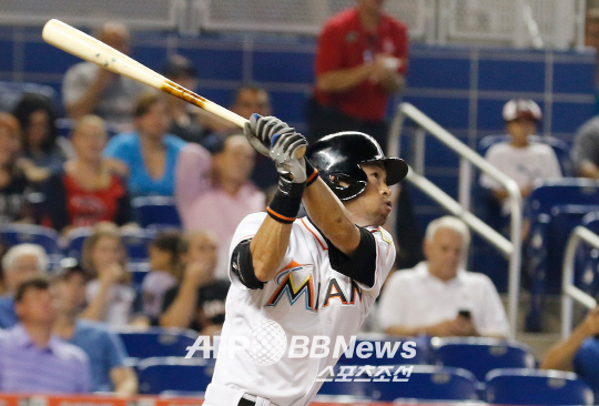 | 이치로가 13일 보스턴전 2회 1타점 적시타를 터트리고 있다. ⓒAFPBBNews = News1 |