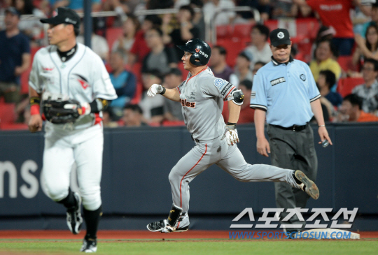 2015 KBO리그 한화이글스와 LG트윈스의 경기가 6일 대전 한화생명 이글스파크에서 열렸다. 한화 2회말 선두타자 정현석이 우전안타를 치고 출루하고 있다. 대전=최문영 기자 deer@sportschosun.com /2015.08.06/ |