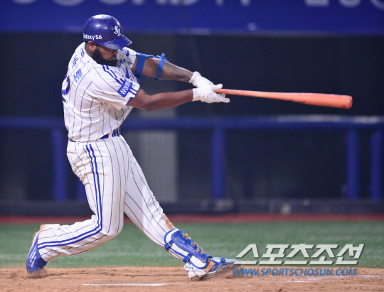15일 오후 포항 야구장에서 2015 프로야구 한화와 삼성의 경기가 열렸다. 7회말 1사 1,2루서 삼성 나바로가 1타점 적시타를 치고 있다.포항=김경민 기자 kyungmin@sportschosun.com / 2015.08.15.