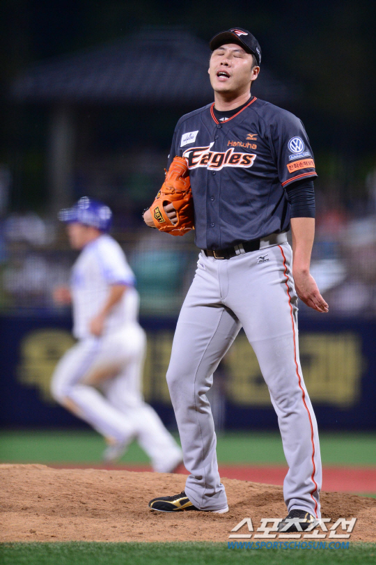 16일 오후 포항 야구장에서 2015 프로야구 삼성과 한화의 경기가 열렸다. 8회말 1사 만루서 삼성 박찬도에게 볼넷을 허용한 한화 권혁이 아쉬워하고 있다. 포항=김경민 기자 kyungmin@sportschosun.com / 2015.08.16. |