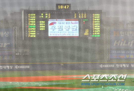 2015 프로야구 롯데 자이언츠와 넥센 히어로즈의 경기가 16일 목동구장에서 열렸다. 1회말 갑작스런 폭우로 인해 경기가 중단되고 있다. 목동=정재근 기자 cjg@sportschosun.com/2015.08.16/