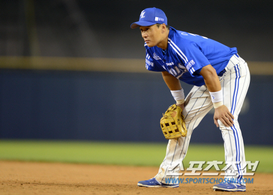 두산과 삼성의 2015 KBO 리그 경기가 18일 잠실구장에서 열렸다. 9회초 1루 수비에 나선 이승엽이 정신을 집중하고 있다. 잠실=허상욱 기자 wook@sportschosun.com/2015.08.18/ |