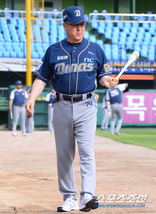 18일 대전 한화생명이글스파크에서 KBO리그 한화 이글스와 NC 다이노스의 경기가 펼쳐진다. 경기 전 NC 선수들이 훈련을 하고 있다. 선수들의 훈련을 지켜보고 있는 김경문 감독. 대전=송정헌 기자 songs@sportschosun.com/2015.08.18 |